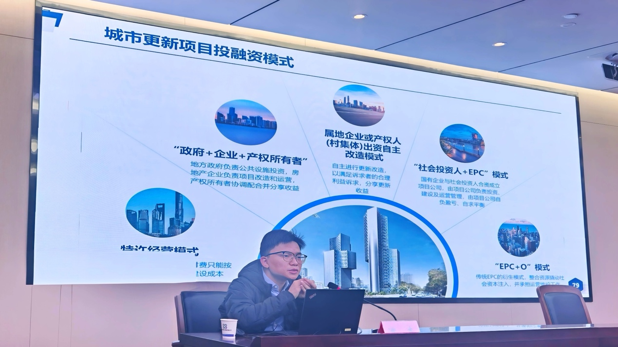 潘杰以城市更新政策導(dǎo)向作引,對(duì)現(xiàn)階段城市更新主要任務(wù)進(jìn)行深入淺出的介紹,并結(jié)合地方城市更新工作要點(diǎn),為與會(huì)人員詳細(xì)介紹了各類(lèi)上級(jí)資金與城市更新項(xiàng)目的適配性。并結(jié)合以舊換新實(shí)施案例,對(duì)城市更新工作推進(jìn)方向及推進(jìn)重點(diǎn)抽絲剝繭,幫助與會(huì)人員更好理解城市更新項(xiàng)目實(shí)施要點(diǎn)。