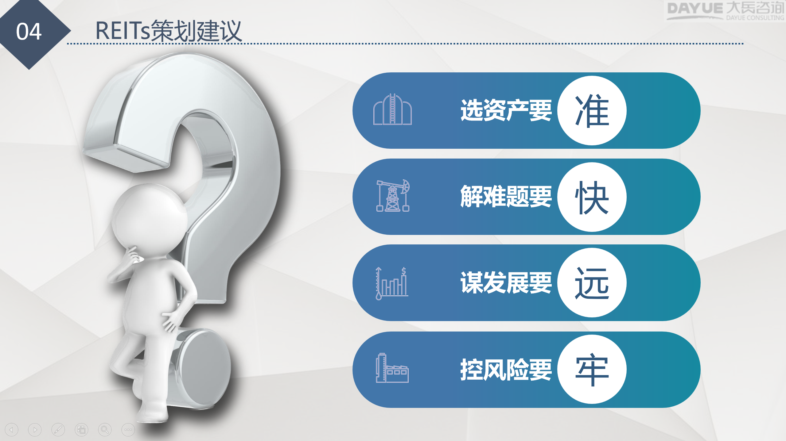 基于對(duì)政策背景、申報(bào)要點(diǎn)與案例的綜合分析,曹總總結(jié)提出了“準(zhǔn)、快、遠(yuǎn)、牢”的REITs項(xiàng)目策劃建議,為此次培訓(xùn)畫上圓滿句號(hào)。