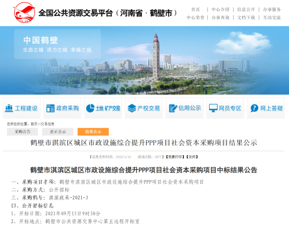 鶴壁東區(qū)市政設(shè)施綜合建設(shè)及提升PPP項目發(fā)布中標(biāo)公告